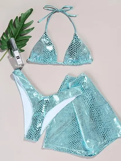 Women's Halter Thongs 3 Piece Bikini Set Waterproof Quick Dry Luxury Beachwear Customizable